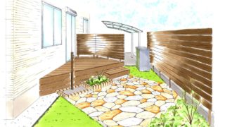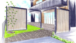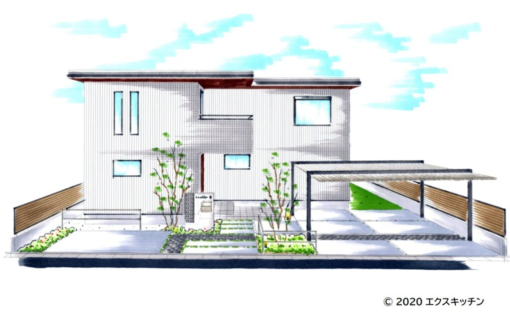 新築外構外構・エクステリア デザインプラン集 新築外構・エクステリアのデザインプラン集を掲載しております。手書きイメージパースと平面図によるご説明を、素材・配置・形状等の意匠を少しばかり綴っております。詳しくはお問合せページよりお気軽にご相談ください。新築外構