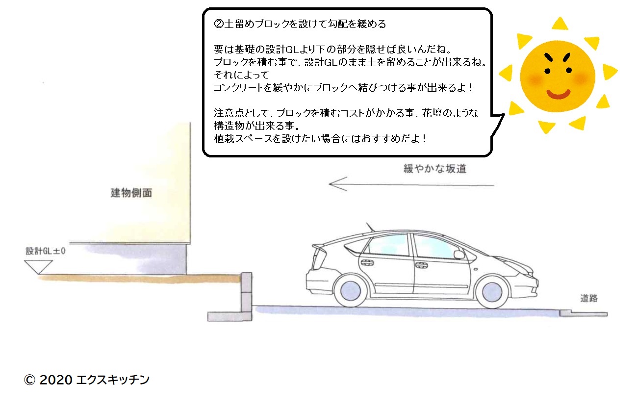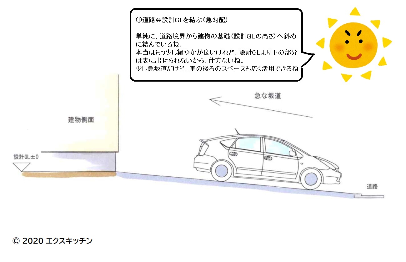 そもそも、接している道路と設計GLの高低差があまりない方にとっては縁のないお話です。
