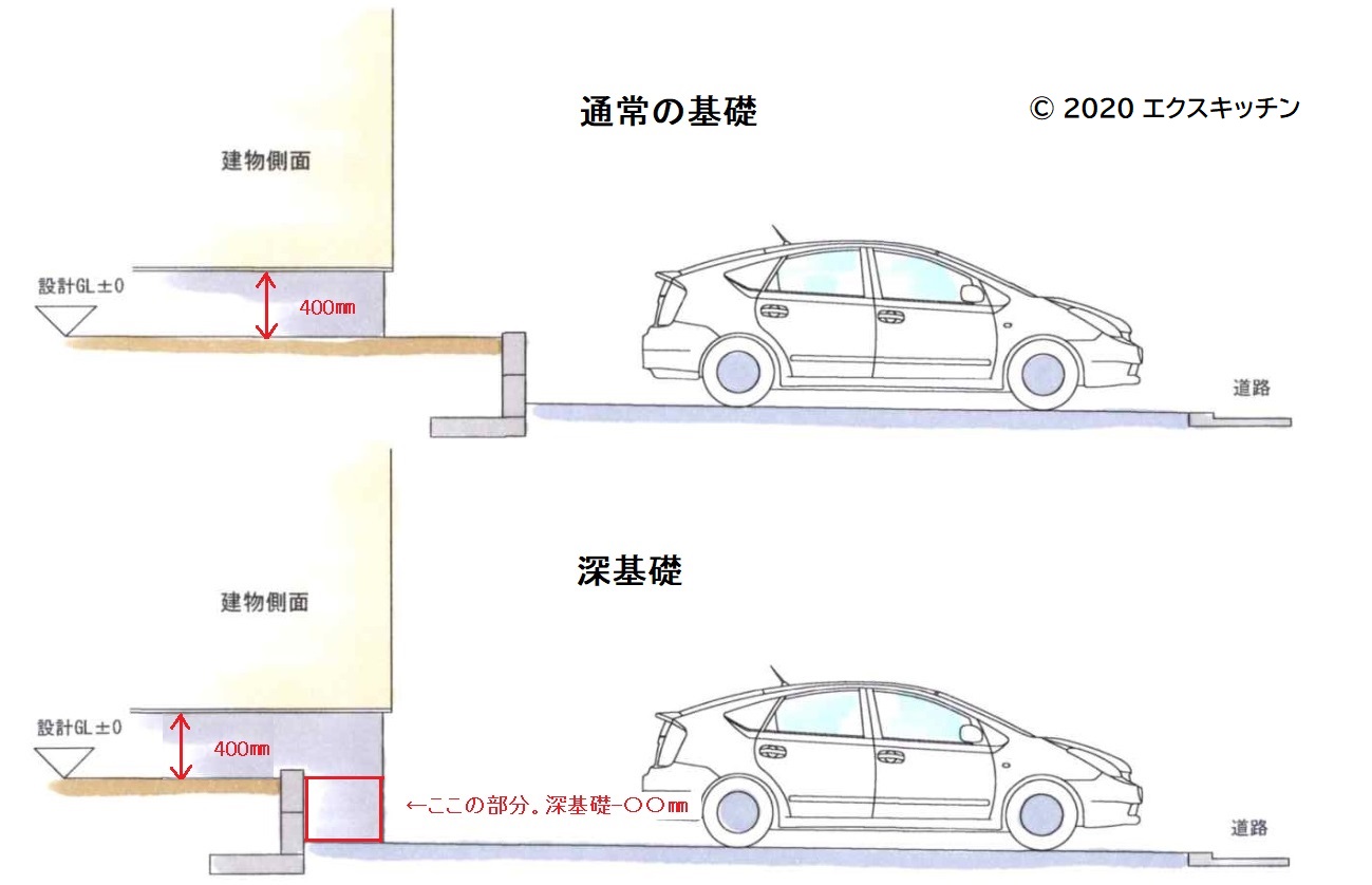 この-〇〇㎜を 深基礎-〇〇と呼びます。