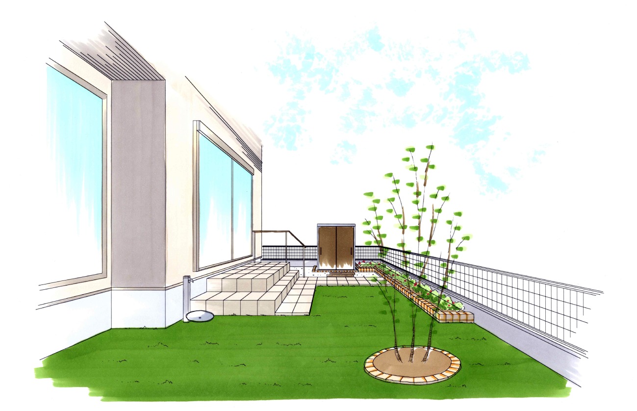 ・日々の雑草対策として、人工芝を敷設することで大半の防止につながりメンテナンスのかからないお庭になります。