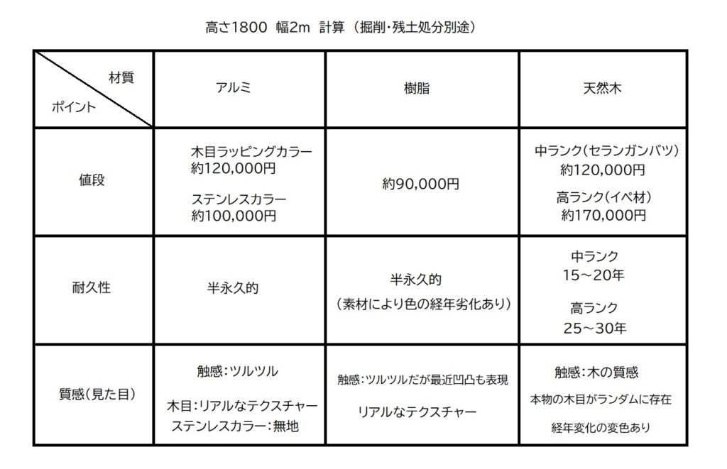 ・フェンス板の素材 に関して