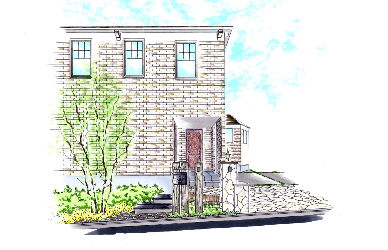 門柱は枕木材と石張りの2つに分け、表札・ポストとインターホンを取り付けてナチュラルであり重厚感を感じさせられるエントランス回りを引き立てます。