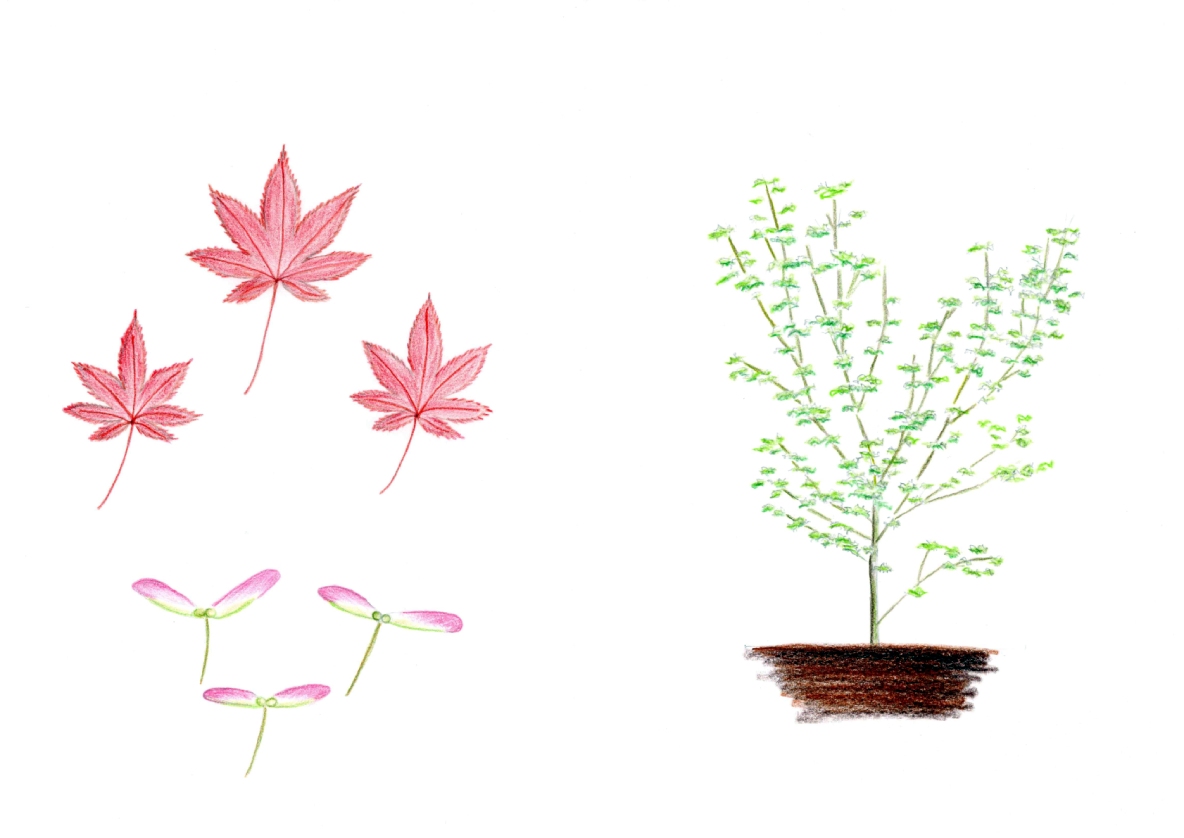 若葉の生えきらないうちに開花します。花が終わるとすぐに種子を発達させ、熟すとプロペラのように舞い落ちます。紅葉だけでなく、新緑の季節の優しい緑も癒しを与えてくれます。黄色から紅色に染まる姿には趣を感じられます。 寒暖差が大きな土地ではより深い紅葉を楽しむことができます。