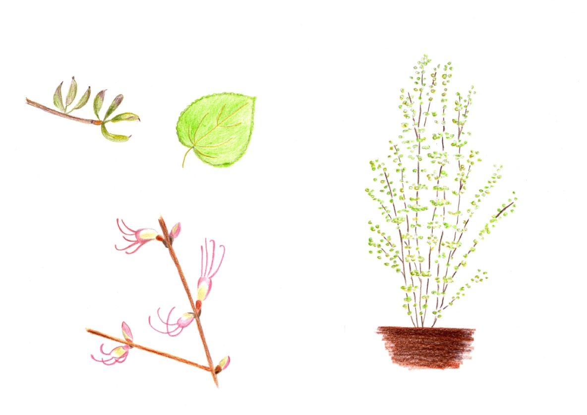 新緑と黄葉が大変見応えのある樹木です。3月~5月頃に風変わりな花を咲かせます。花には雌雄がありますが、どちらも花びらがなく目立ちません。 高くなると30mを超える場合もあります。植える際は、広い場所でのシンボルツリーとして利用されることをお勧めします。丸状やハート状の葉をつけ、とても柔らかな優しい印象をもたらしてくれます。秋には黄色に黄葉し、落葉時期にはほのかに甘い香りを発することからコウノキ(香の木)とも呼ばれています。枝が茂ってきたら、間引く程度に剪定をすると良いです。