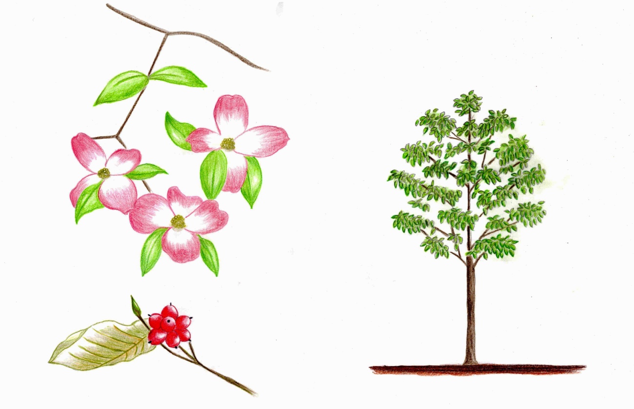 4月~5月に白やピンク色の可愛らしいお花を咲かせます。花びらのように見えるところは総苞片(そうほうへん)と呼ばれる部分です。初夏から盛夏にかけて茂る葉は涼しげな印象を与えてくれます。秋頃には赤く熟した実がつき紅葉が楽しめます。明治時代に東京市がアメリカへサクラを贈った際の返礼としてハナミズキが贈られてきたといわれています。