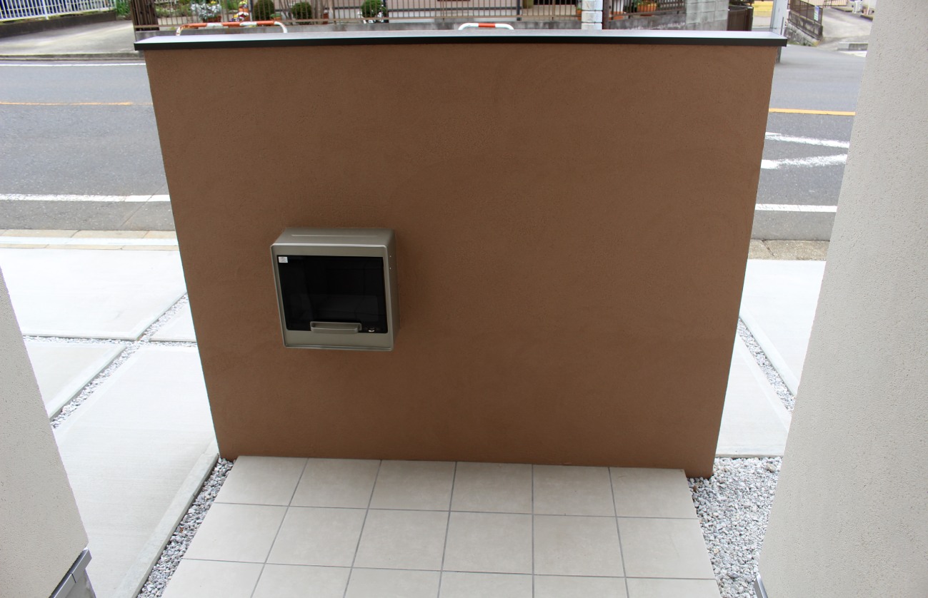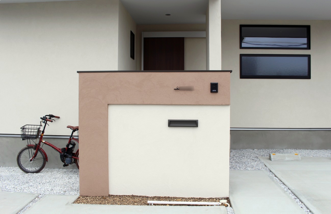 LIXILの口金ポスト(埋め込み型)を採用し郵便物容量を確保しつつ、毎日の快適に出入りが出来る空間を作成しました。