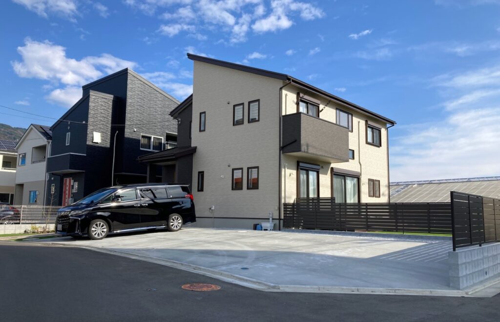 駐車・駐輪スペースは広々とコンクリート舗装にし、来客の際にもゆったりと駐車出来るようにしています。