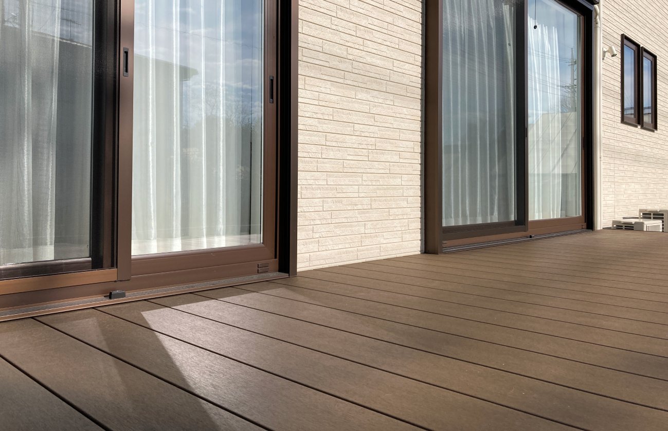 掃き出し窓からお庭に続くデッキはご家族で遊べる広々空間に。樹脂製のデッキは経年変化によるささくれ等の心配もありません。風合いも美しくお庭に優しく調和します。