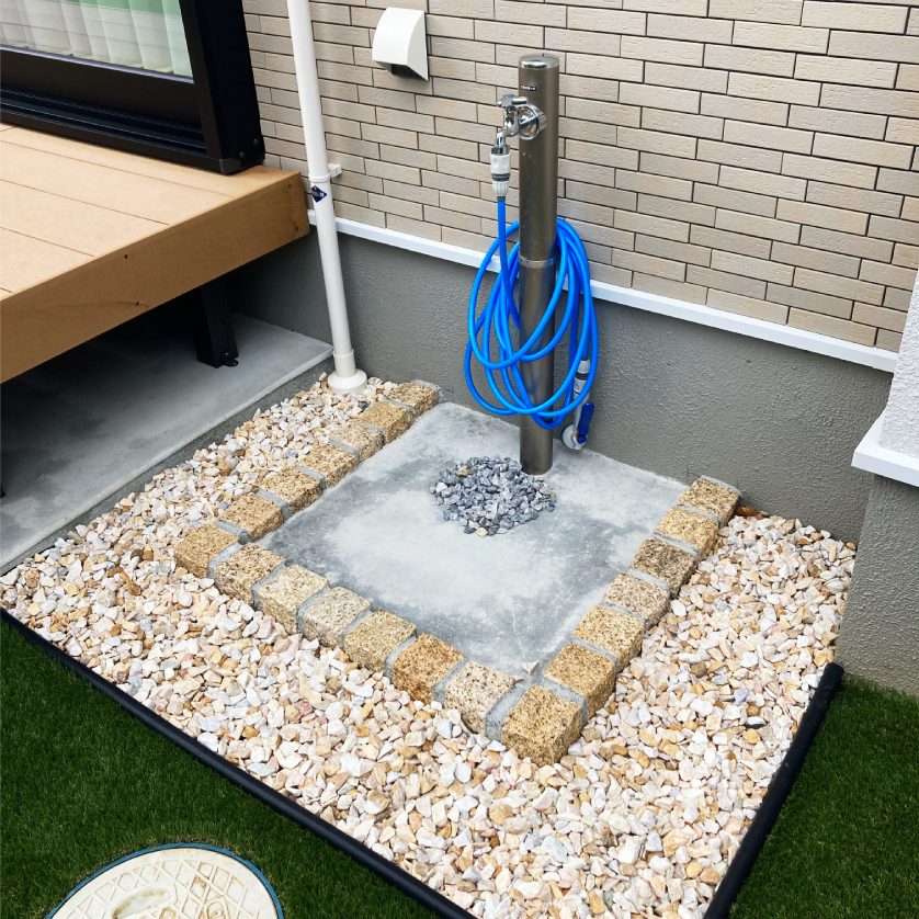 ピンコロ石とモルタルで作成した水栓パン
