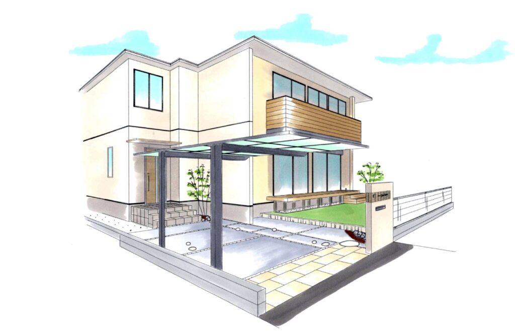 駐車場はゆったり車を1台停められるように土間コンクリ―ト舗装にしています。