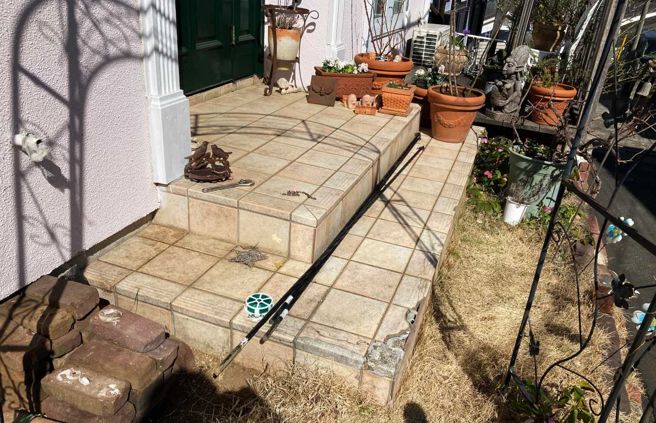 傷んでいない玄関ポーチは残しつつ、破損している階段部分は新たにコンクリート舗装を施しています。