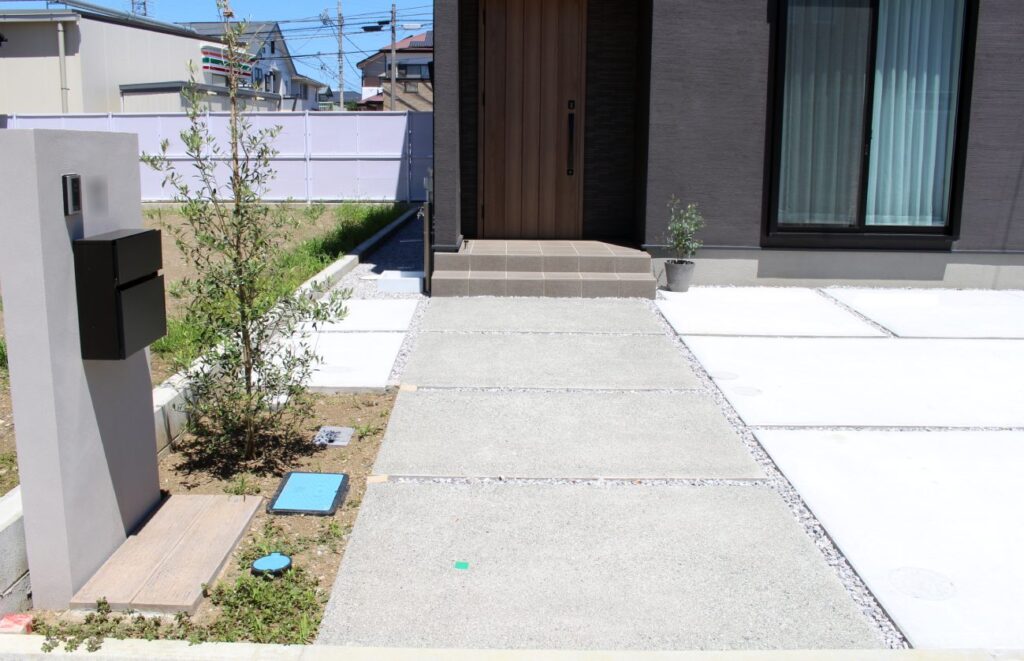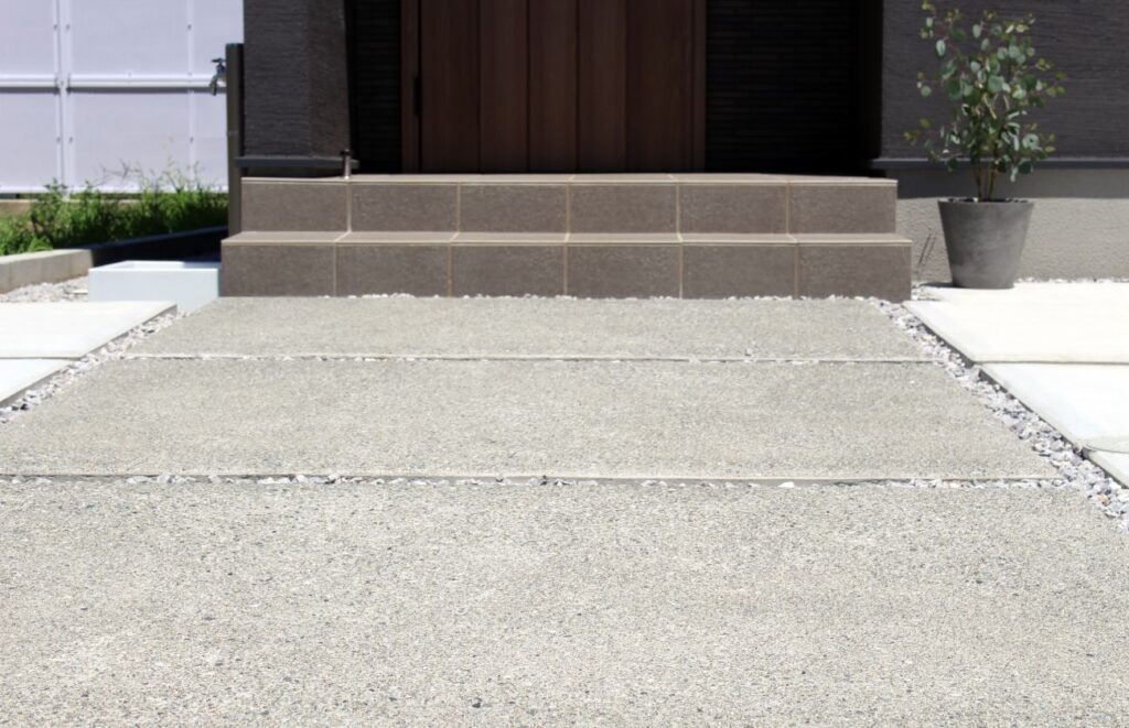 コンクリート舗装の仕上がりよりも色味が落ち着いた印象になり、近年では和風のデザインだけではなく、シンプルなデザインの住宅や、ナチュラルな印象の住宅にも採用されることがあります。
