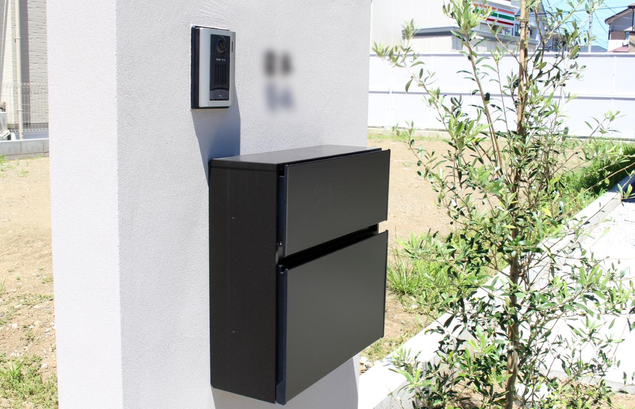 門柱のすぐ横には2mのオリーブの木を植栽することで、シンプルで落ち着きある中にも穏やかな印象を与えることが出来ます。