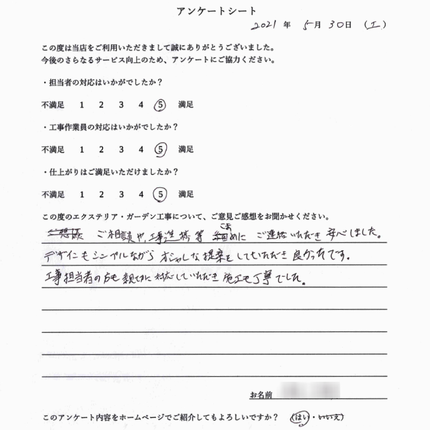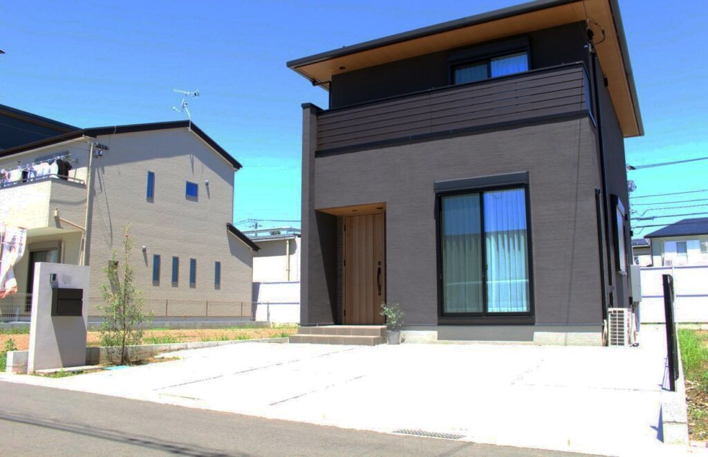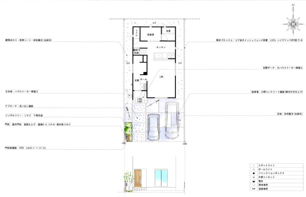南側に駐車場とアプローチが配置されるこちらの敷地は、お施主様の車や来客用の車がゆったりと駐車出来るように広々と舗装面を作成しました。