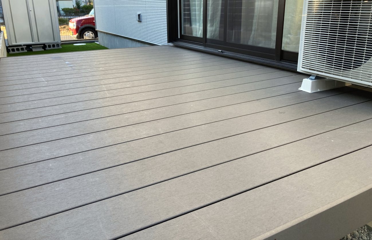 掃き出し窓からお庭に続くデッキはご家族で遊べる広々空間に。樹脂製のデッキは経年変化によるささくれ等の心配もありません。