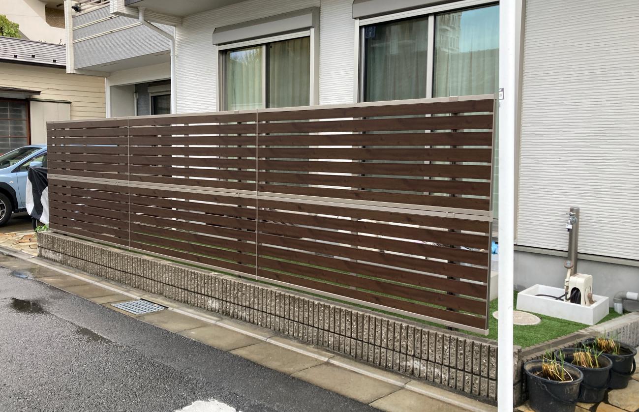既存の化粧ブロックの内側に独立タイプの目隠しフェンスを設置しています。隣地方向に向かってL字に囲むことで目隠し効果が期待できます。