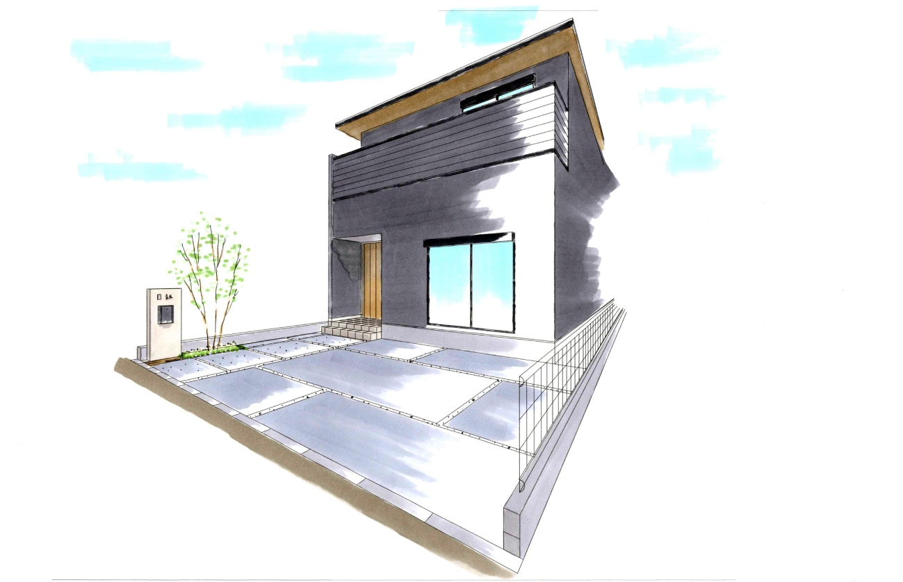 清潔感のある建物の為に、程よく主張を抑えたプライベート庭のあるオープン外構