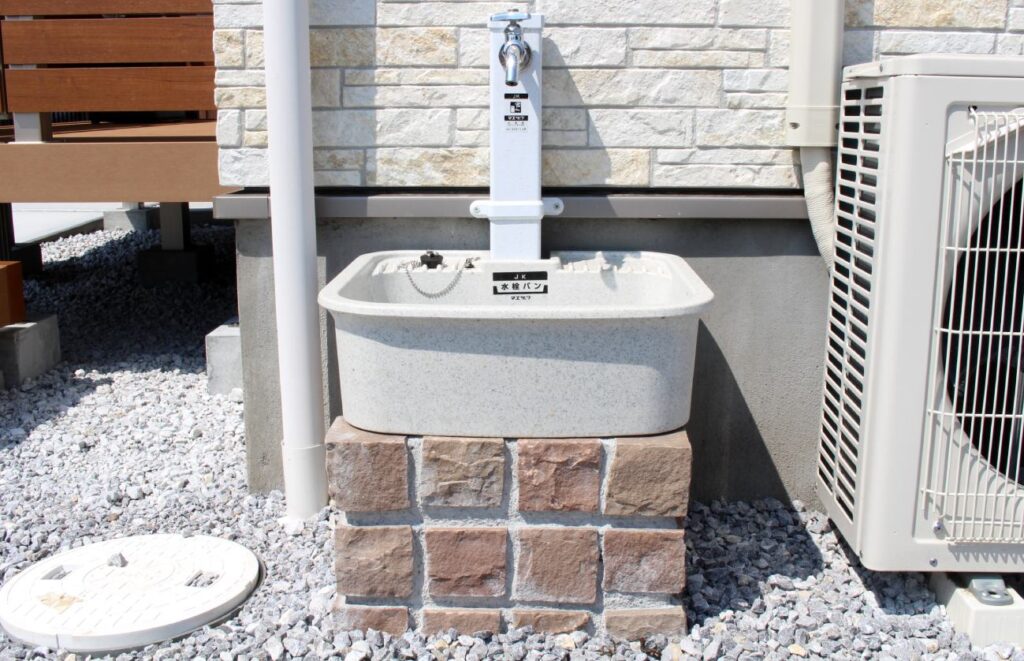 既存の立水栓の土台(無垢なブロック)を撤去し、ピンコロを積み上げることで安定した強度を保っています。