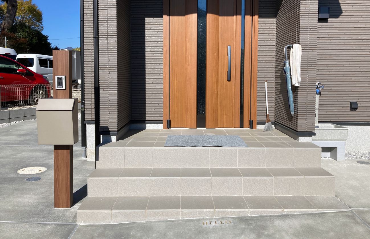 車の出入りを考慮すると、大きな造作門柱は現実的ではないので、木目の美しい機能門柱を採用しています。LIXIL機能門柱FWはコストパフォーマンスも高くデザイン性も優れているのでどんなエクステリアシーンにも合わせやすい商材です。