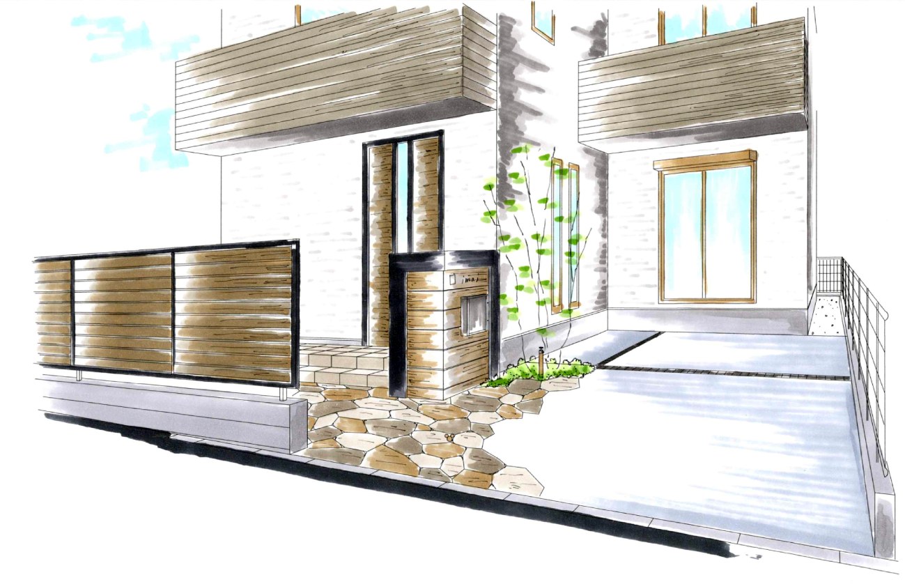 茶色を基調とした趣のある外構