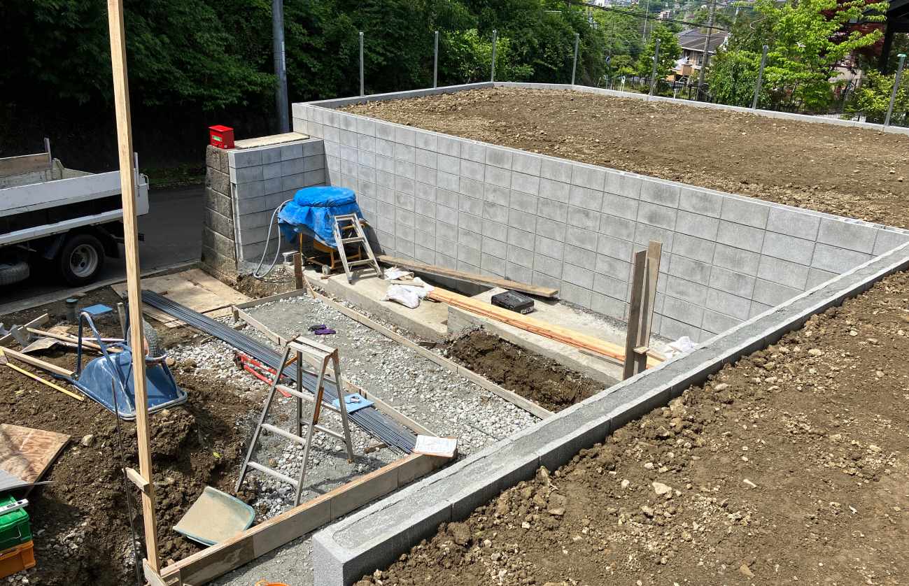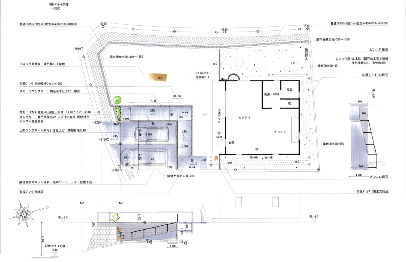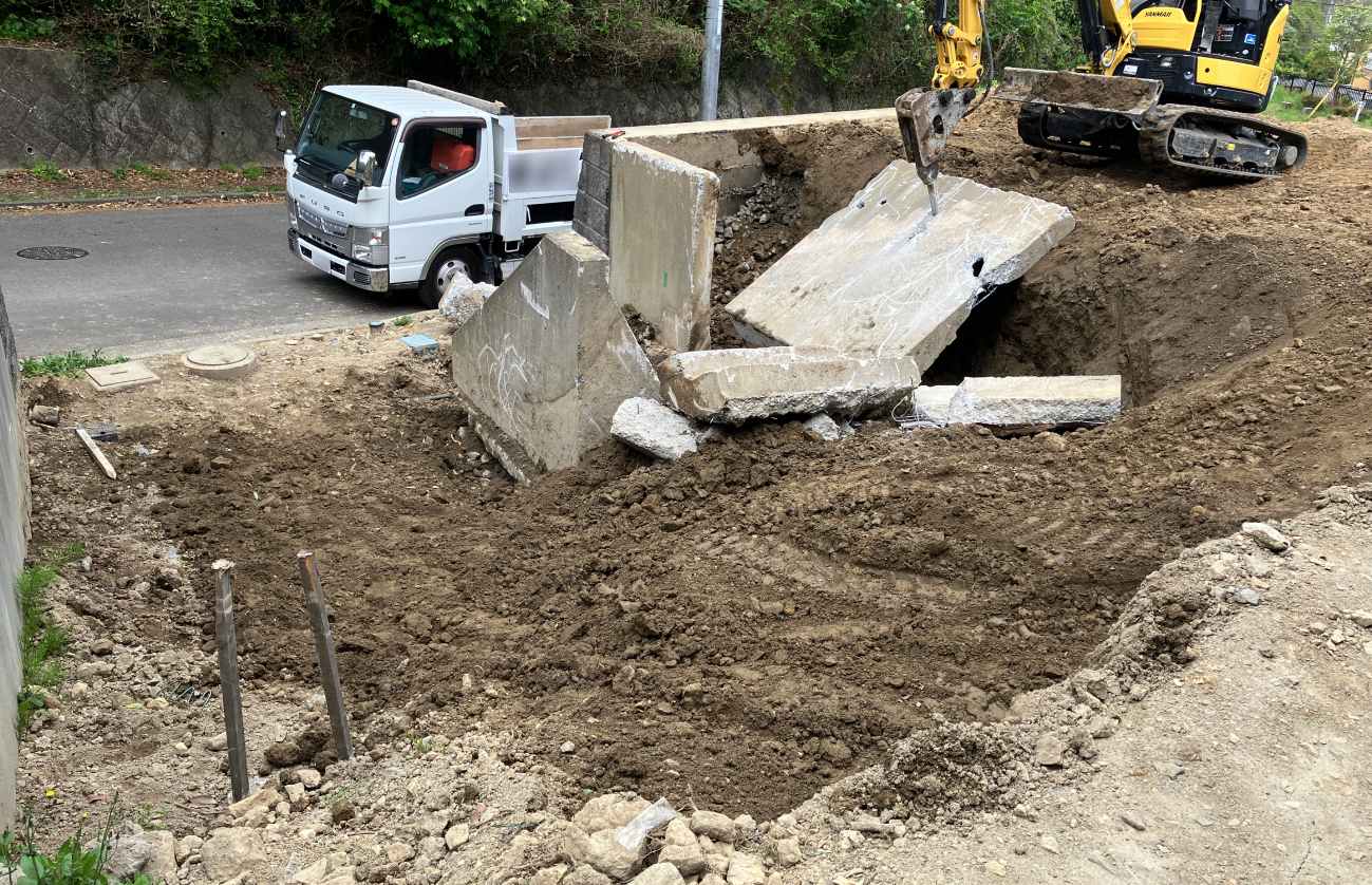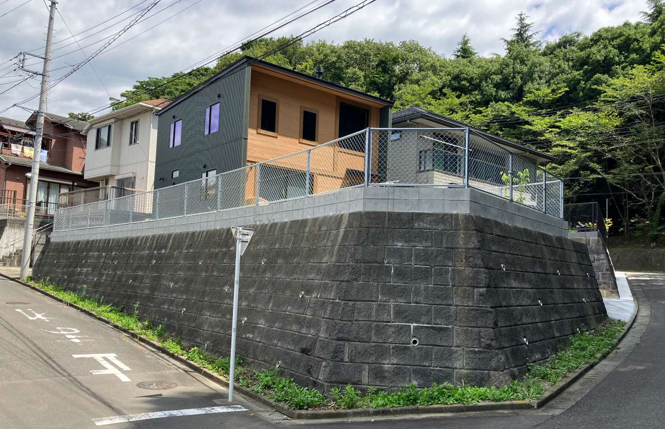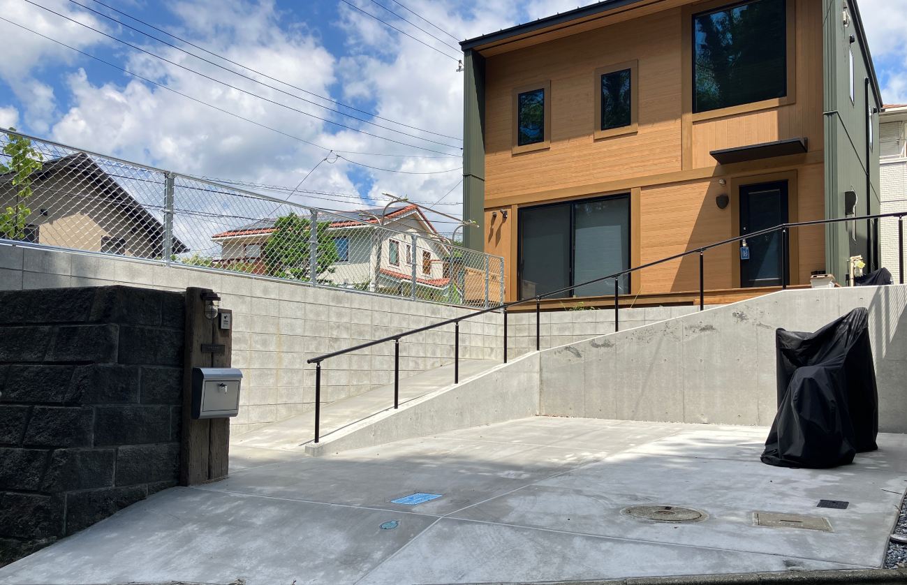 元の敷地内構造物は車1台分のスペースしかありませんでしたが、解体としっかりとした土留めブロックの作成によりお車2台分のスペース確保が可能となりました。