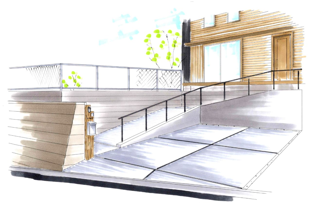 高低差約2mの敷地をどのように使いやすく組み立てるかを重点してデザインしました。