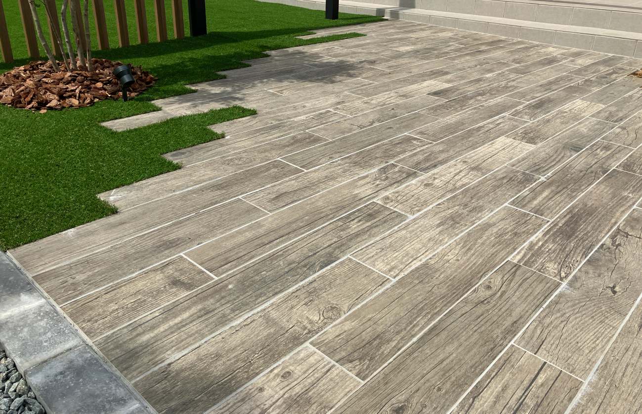 長年使い込まれた古木の表情を忠実に表現された、ヴィンテージ風の木目タイル。重圧感のある20㎜厚なので車両の乗り入れも可能です。